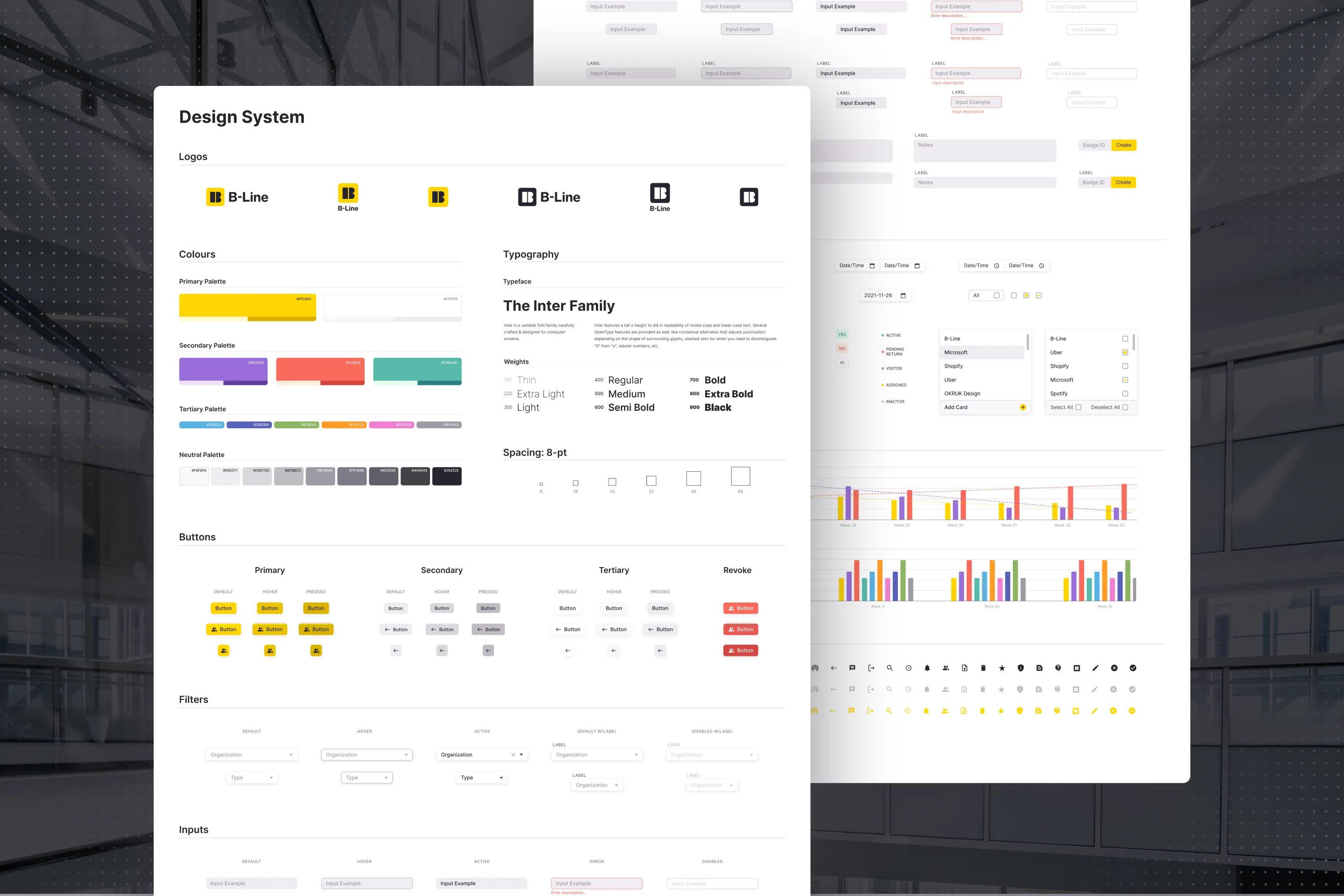 B-Line is a Canadian tech startup with a facilities management platform for workplace optimization. I worked with B-Line to reposition their branding as a cutting edge service provider across both their products and marketing channels. Identity system work included logo design, brand palette, typography, graphic elements in addition to a new UI components library for their platform. This new design system resulted in an entirely new identity for the business, one that can speak to the innovative space B-Line works in and reenforces their credibility.