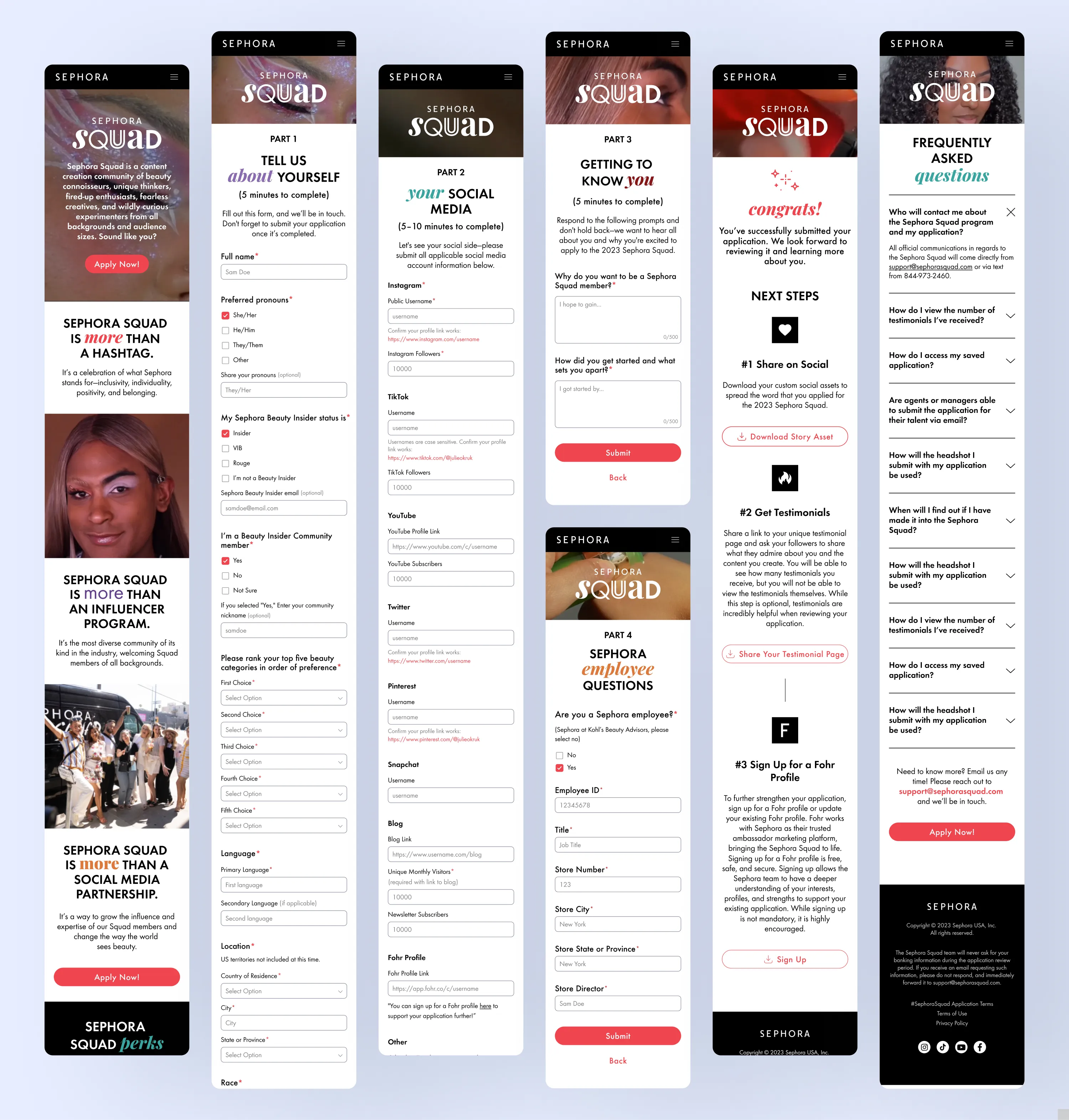 In 2023, while working at the influencer marketing agency Fohr, I redesigned the Sephora Squad application experience—Sephora’s flagship influencer program.